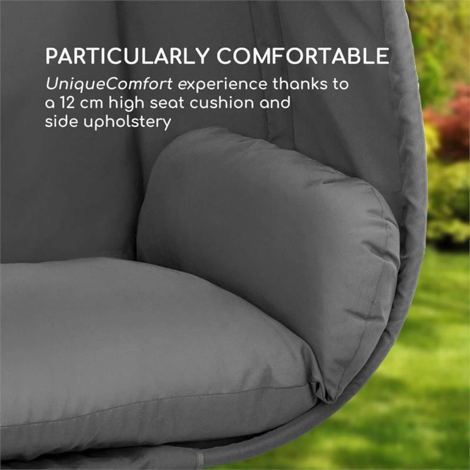 Ort der Ruhe: Hängesessel mit weichem Polster für entspannte Stunden