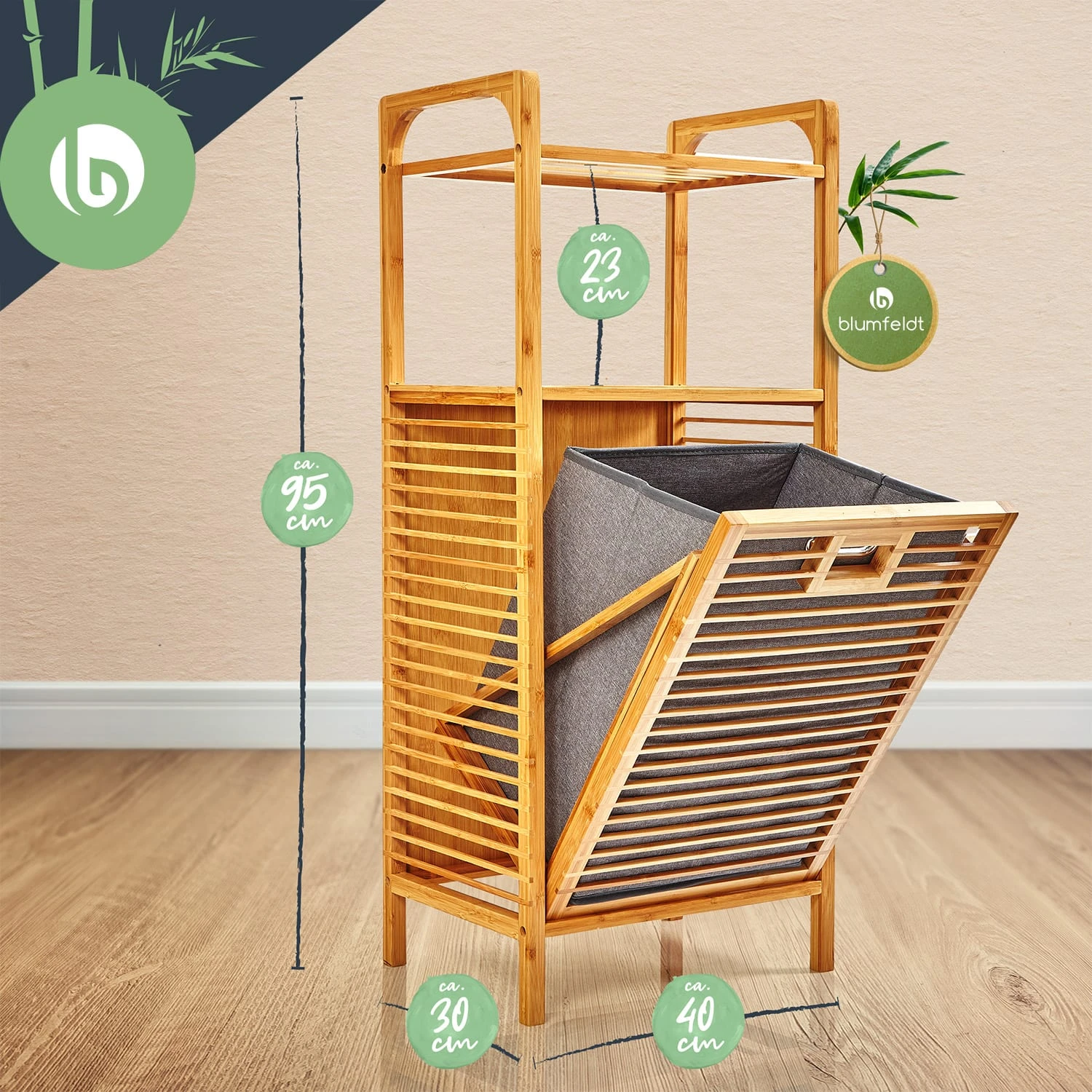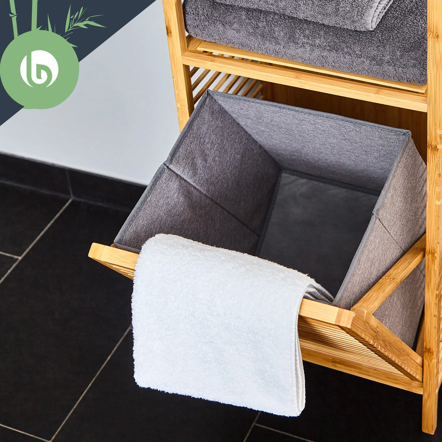 Natürliche Materialien: 2-in-1 Standregal aus Bambus mit Wäschekorb aus Baumwollleinen