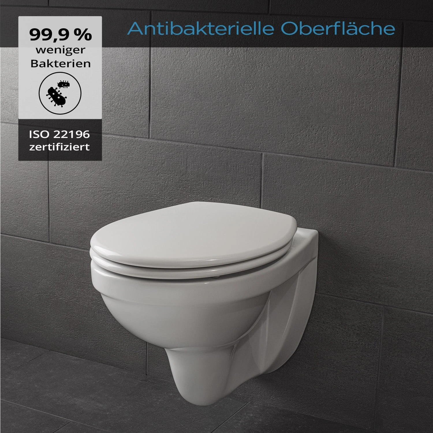 - antibakterielle Oberfläche: 99,9 % weniger Bakterien zertifiziert nach ISO 22196