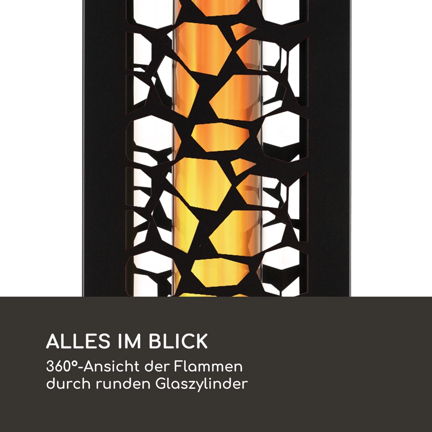 Alles im Blick: 360°-Ansicht der Flammen durch runden Glaszylinder