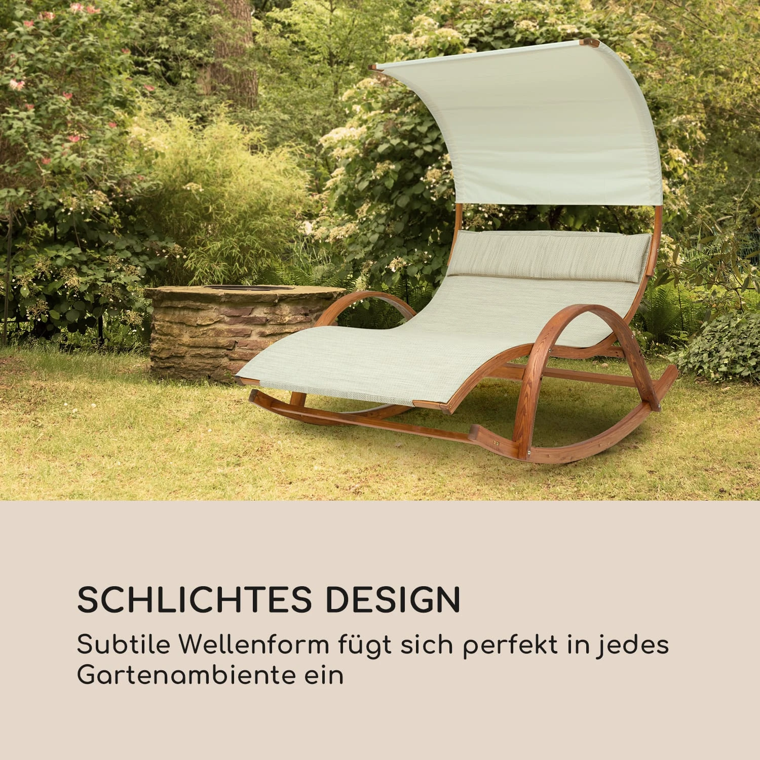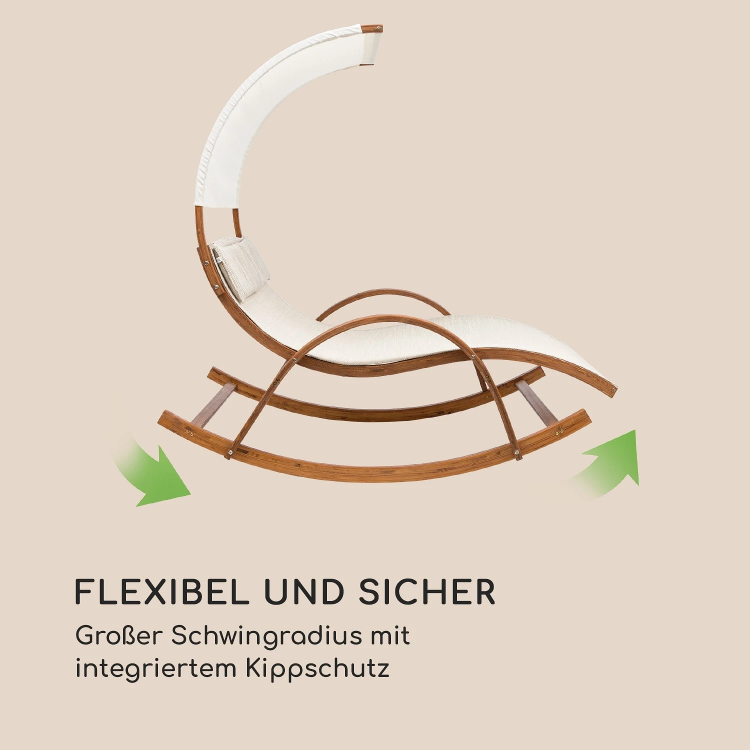Liegekomfort: Schaukelfunktion und ergonomisch geformte Liegefläche mit Kopfkissen