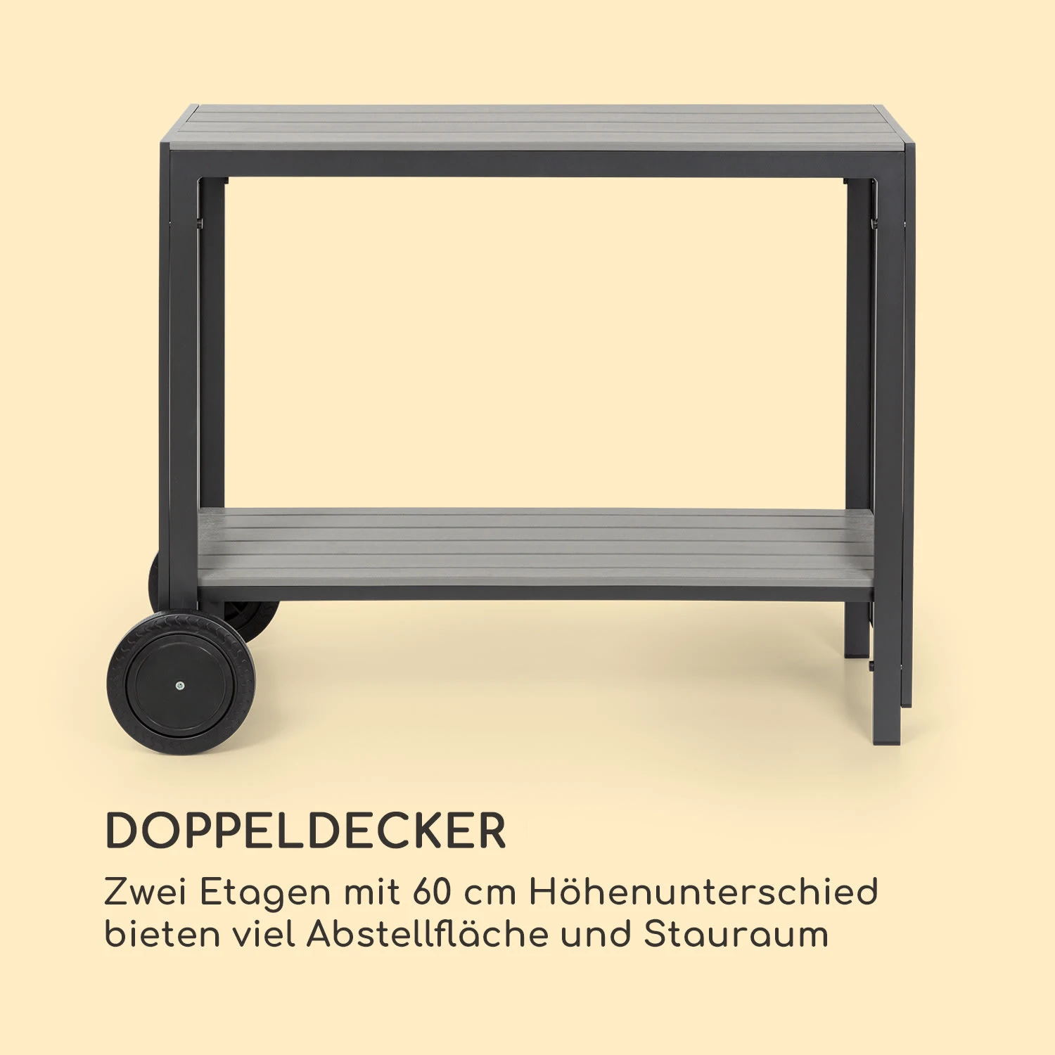 Blickfang: robuster, witterungsbeständiger Serviertisch mit zwei Rollen