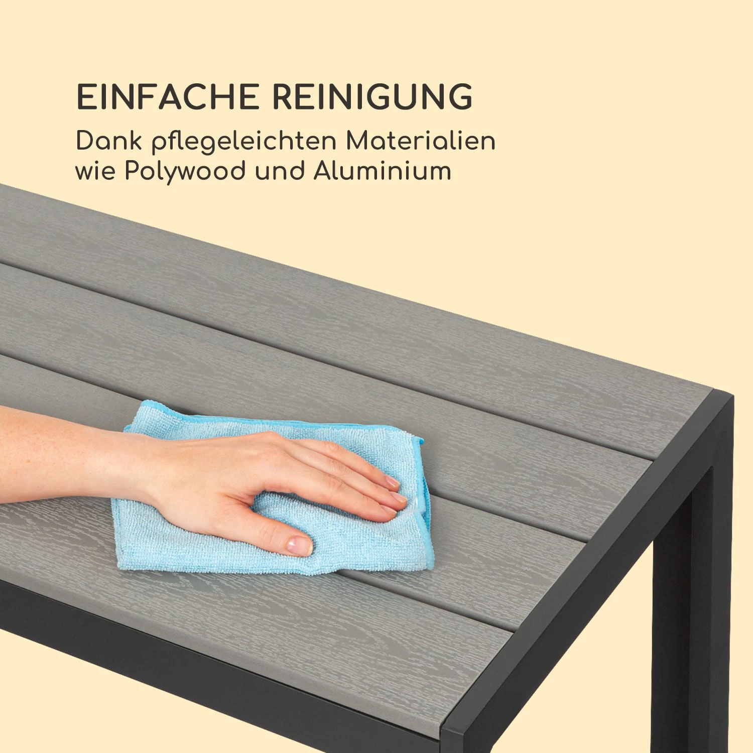 - Tischplatte/Rahmen: Polywood und Aluminium
