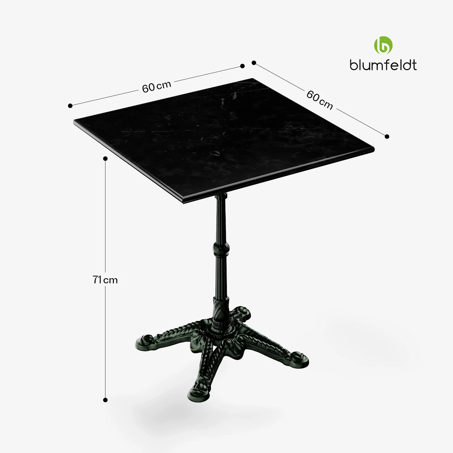 Luxuriöser Genuss mit Jugendstil-Atmosphäre – das verspricht der Blumfeldt Patras Gartentisch und zieht dabei alle Register: Die 60 x 60 cm große Tischplatte ist aus sauber poliertem, echtem Marmor, sodass jeder Tisch ein Unikat ist. Maserung und Färbung des Gesteins bringen immer wieder einen ganz eigenen Charakter hervor und verleihen jedem Umfeld neuen Glanz. Der wird durch den stabilen gusseisernen Standfuß mit floralen Verzierungen zusätzlich verstärkt. Egal ob für das Frühstück auf dem Balkon, zum geselligen Kaffee auf der Terrasse oder das romantische Candle Light Dinner unter dem Sternenhimmel: Der Blumfeldt Patras Marmortisch bietet immer das richtige Ambiente.