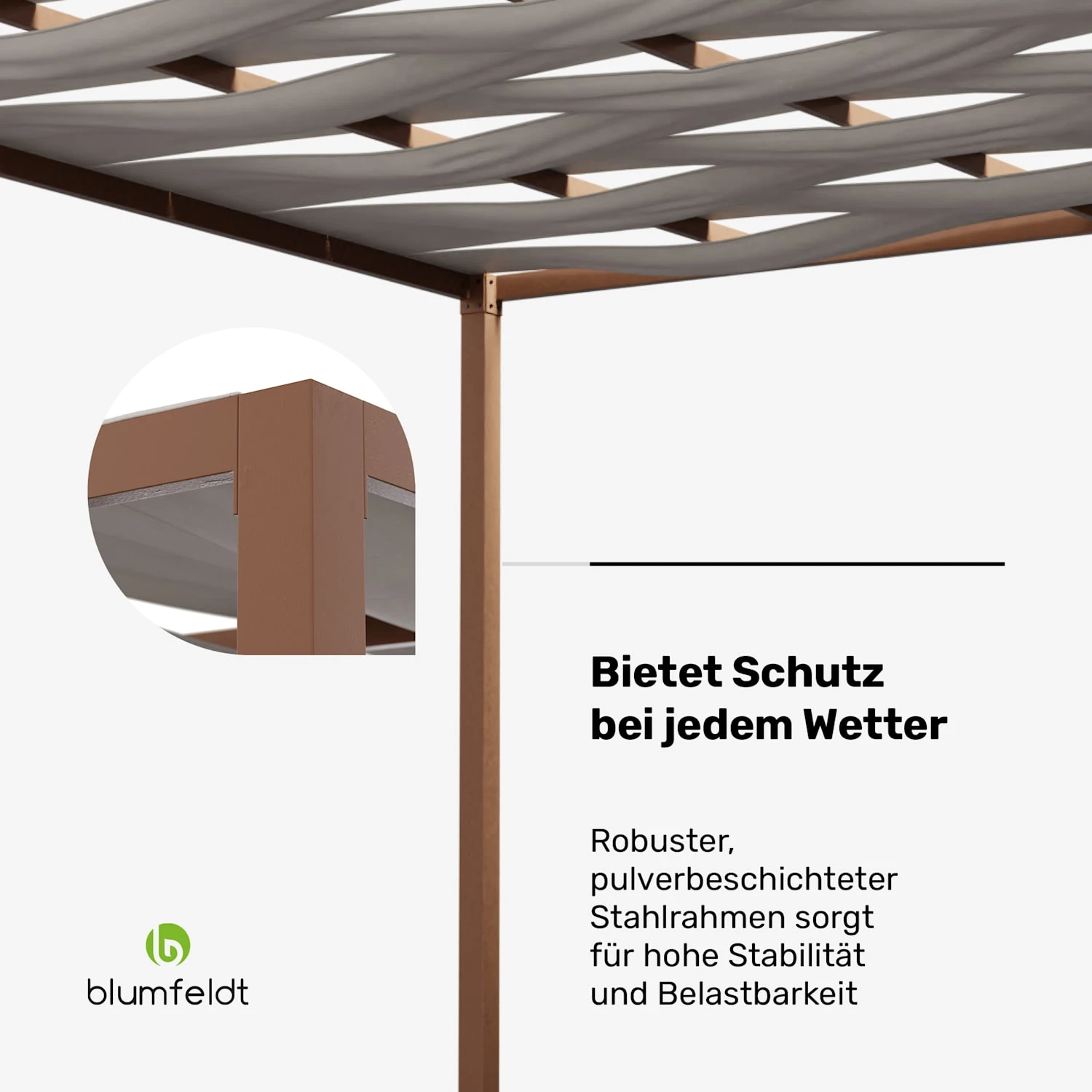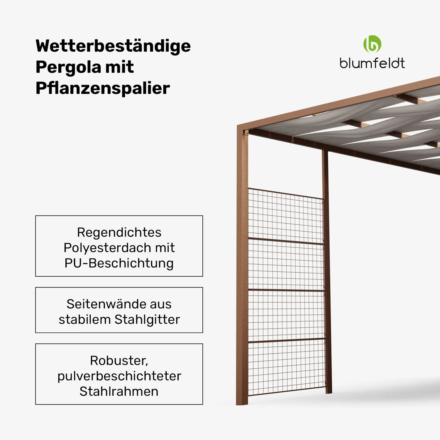 Stabil und langlebig: Die Pergola hat einen robusten, pulverbeschichteten Stahlrahmen, der für außergewöhnliche Stabilität und Langlebigkeit sorgt, damit Sie lange Freude an Ihrer Outdoor-Oase haben