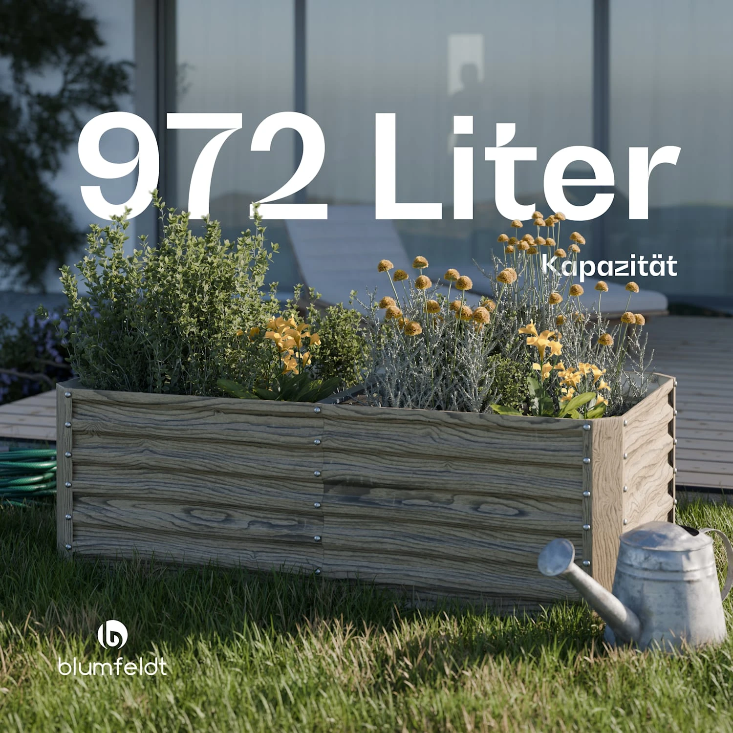 Viel Platz: Großes rechteckiges Hochbeet mit einer Kapazität von 972 Litern, ideal für die Anpflanzung von Blumen, Kräutern und Gemüse