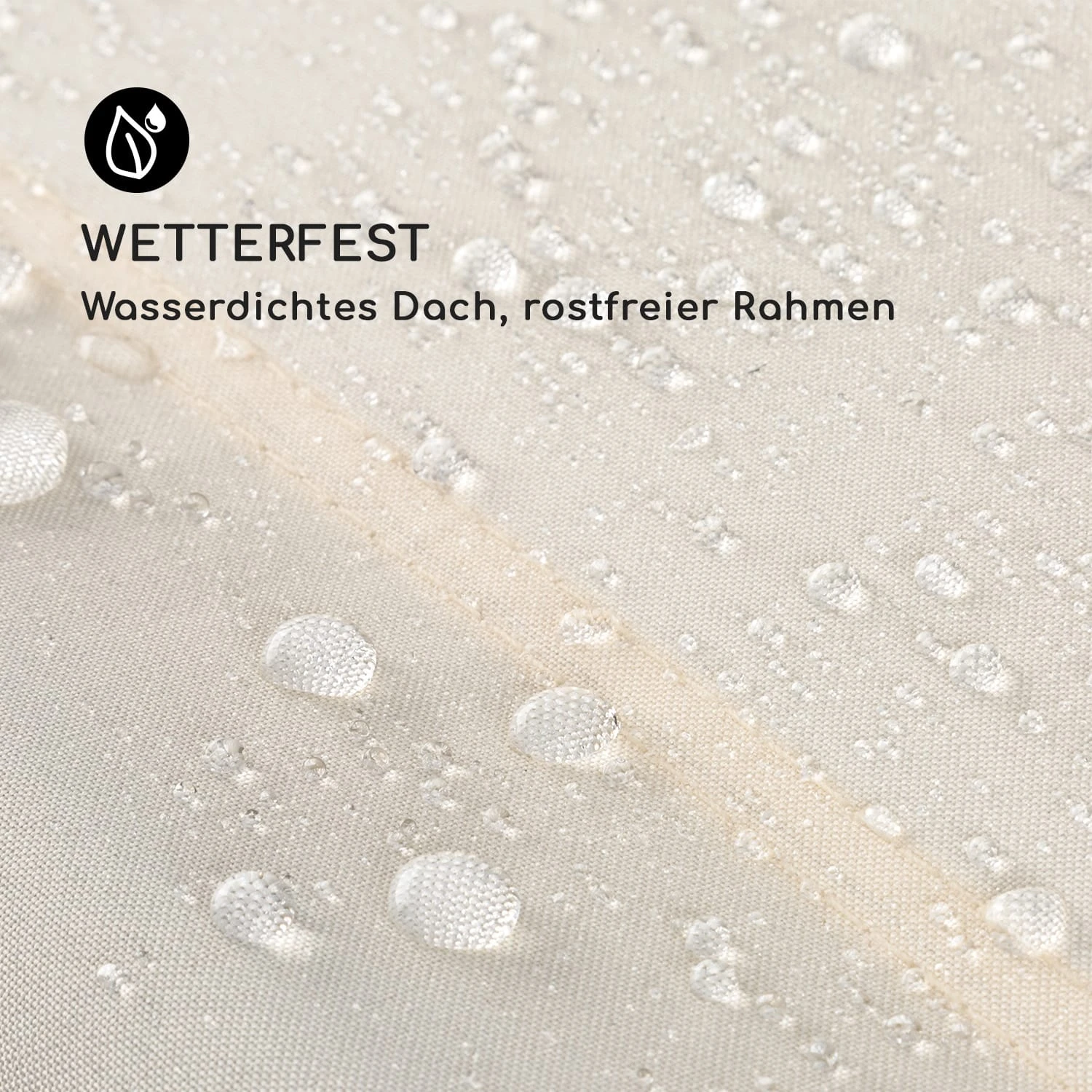 Wetterfest: wasserdichtes Dach, pulverbeschichteter Rahmen