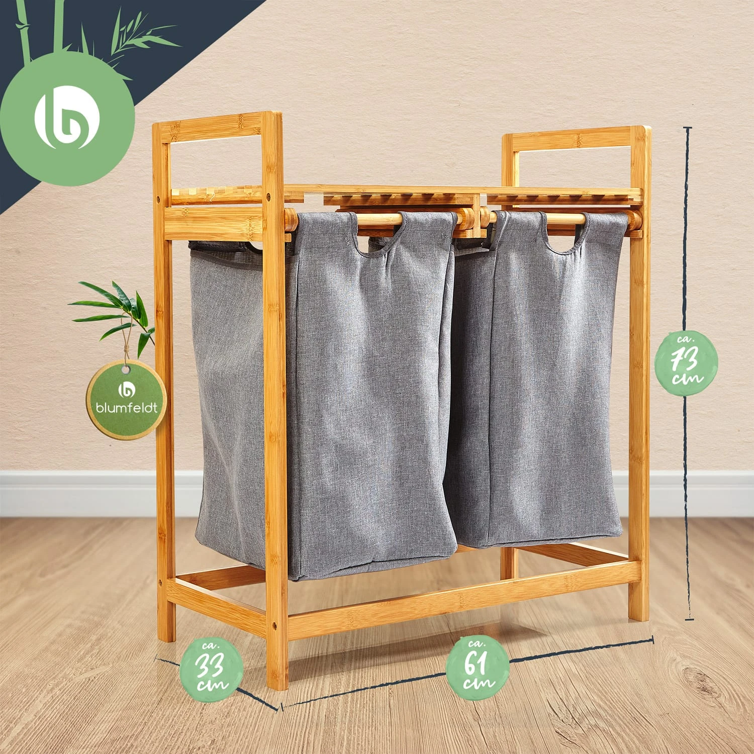 Wäschesammler besitzt 2 herausnehmbare Körbe, die dir ein praktisches