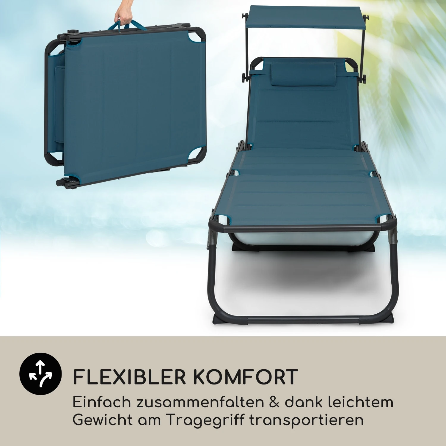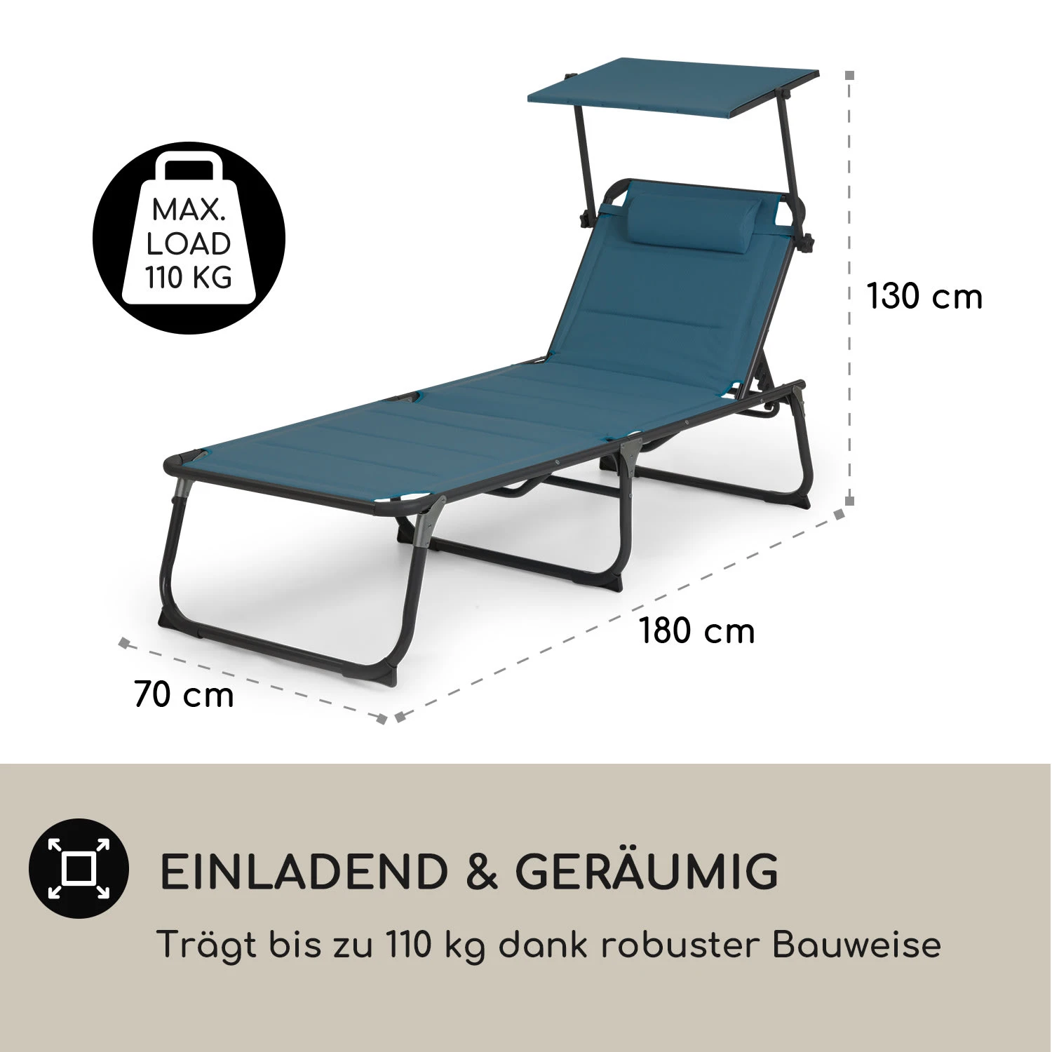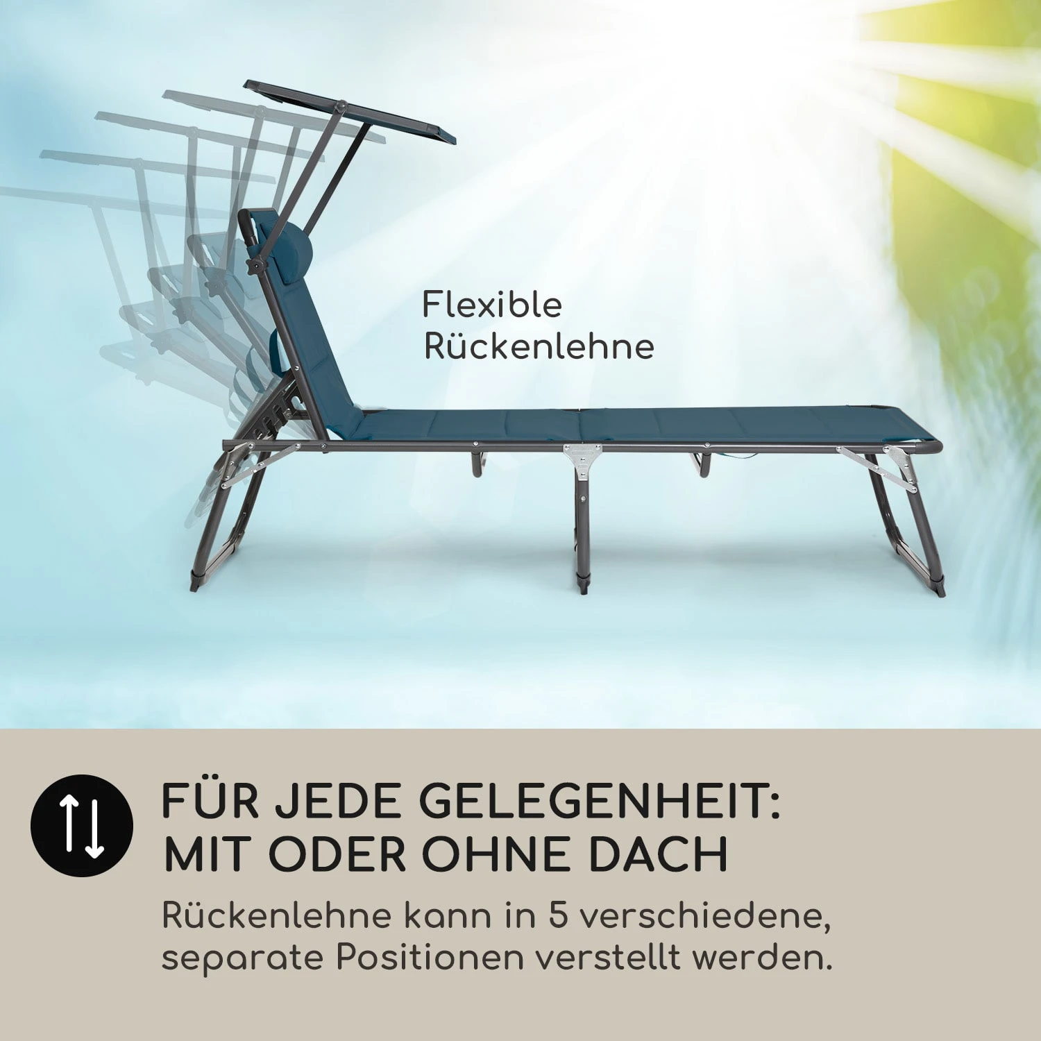 Für Sonnenanbeter: Gartenliege mit verstellbarer Rückenlehne und Sonnenblende
