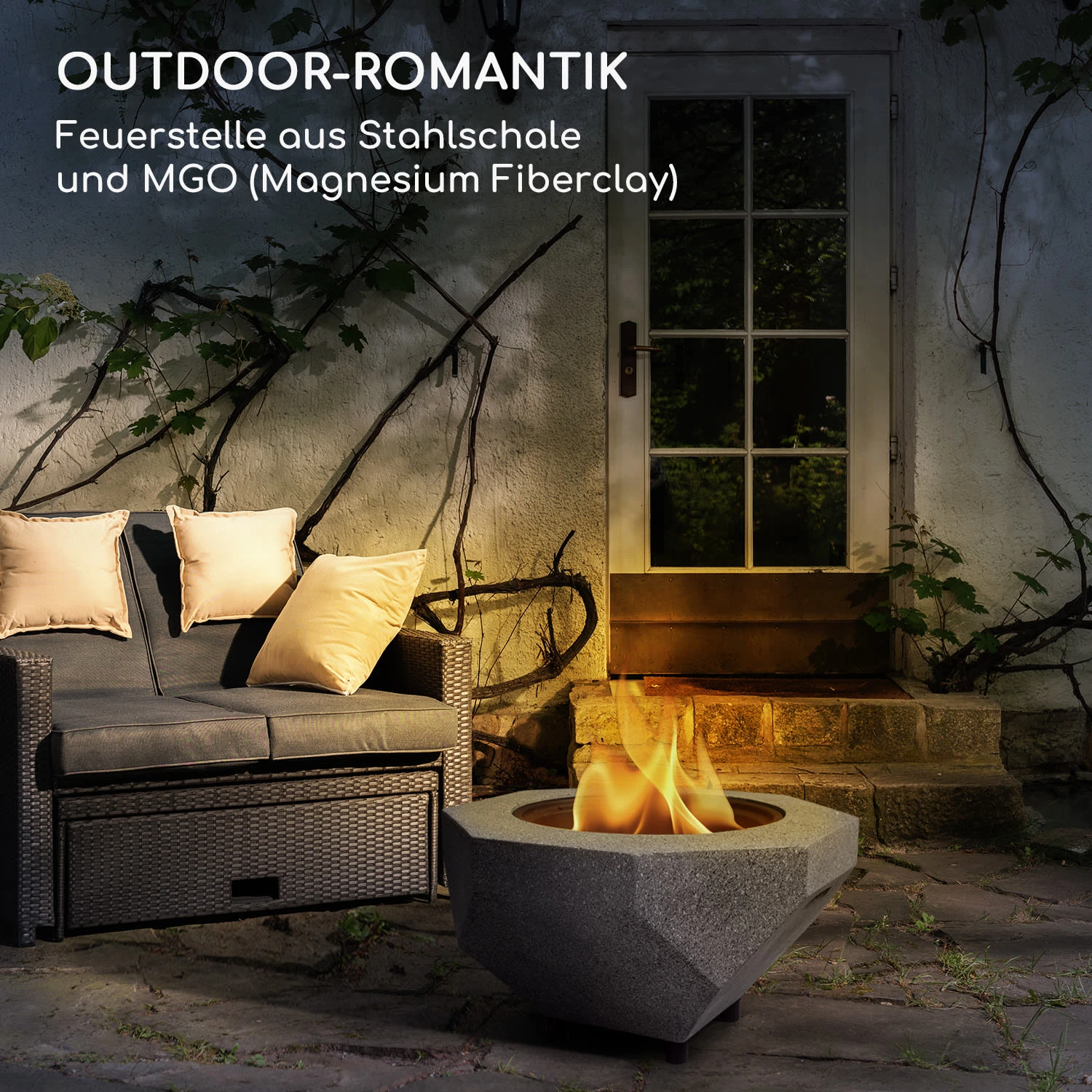 Outdoor-Romantik: Feuerstelle aus Stahlschale und MGO (Magnesium Fiberclay)