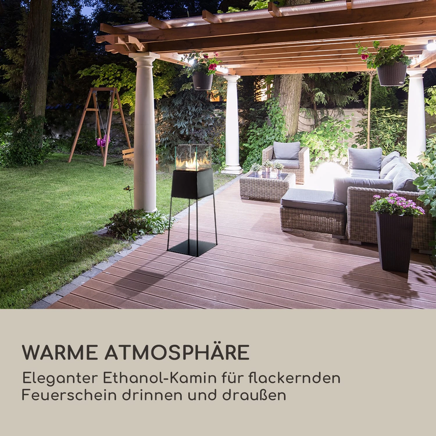 Warme Atmosphäre: eleganter Ethanol-Kamin für flackernden Feuerschein drinnen und draußen