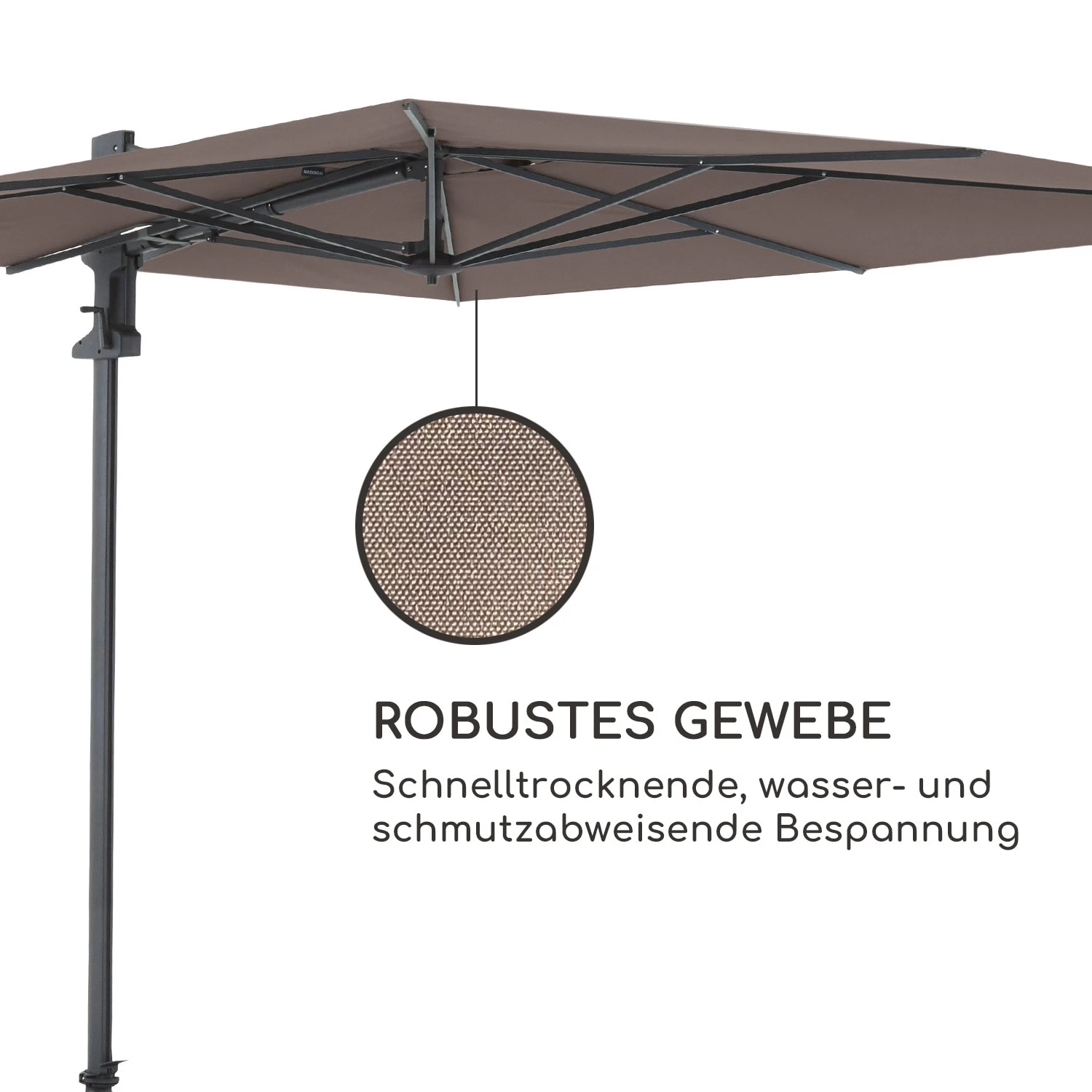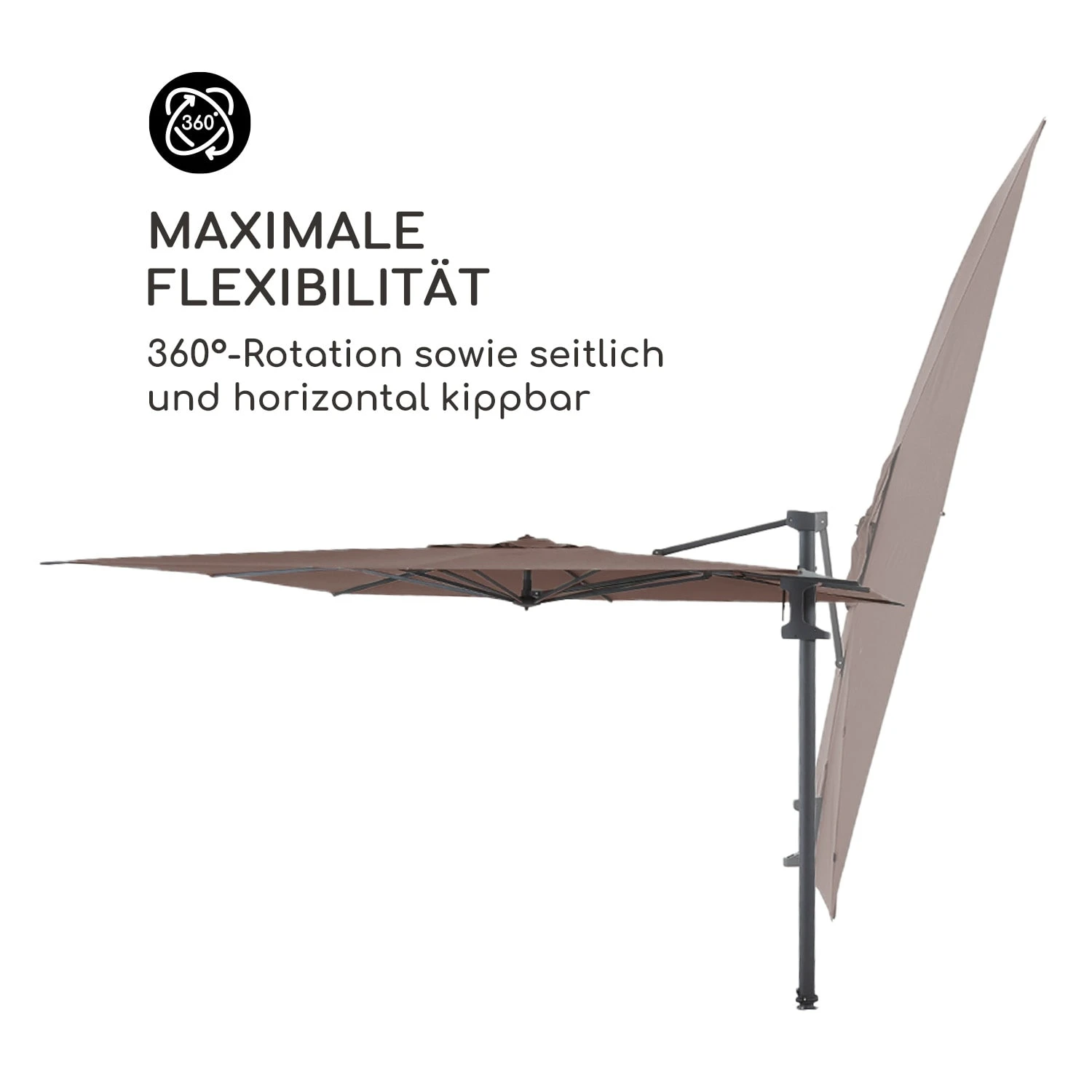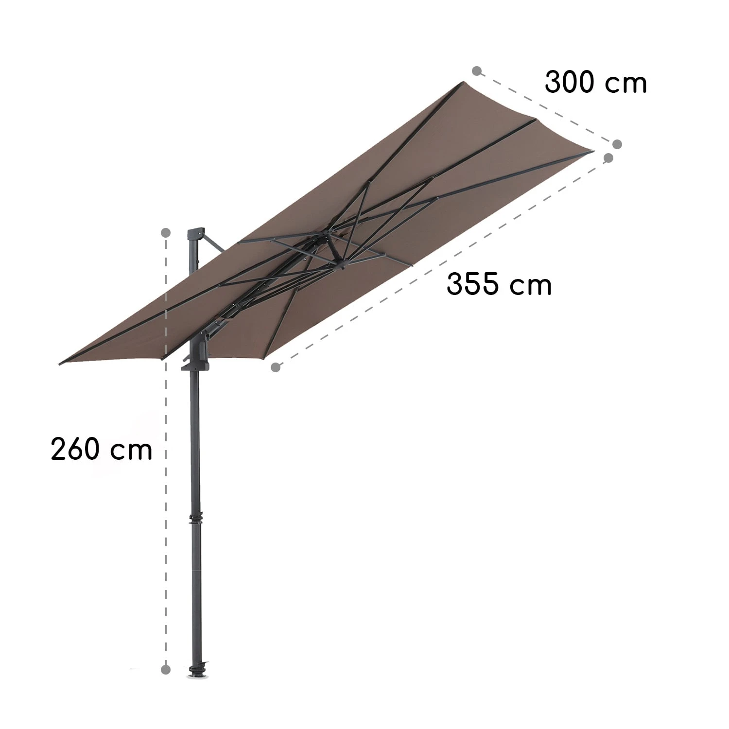 - Maße Schirm (aufgespannt): ca. 355 x 260 x 300 cm (BxHxT)