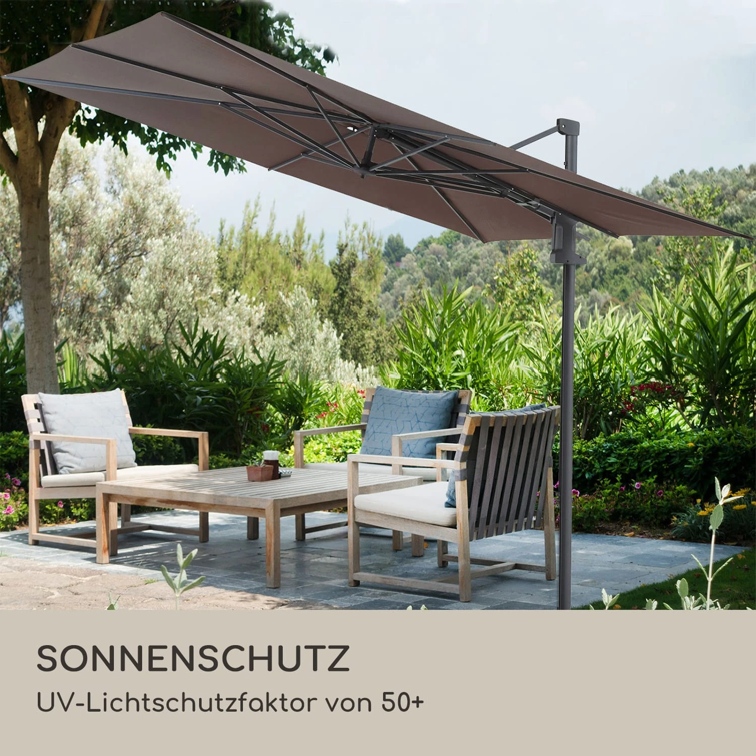 Für Garten, Terrasse und Außengastronomie: Ampelschirm mit einfacher Kurbel-Bedienung