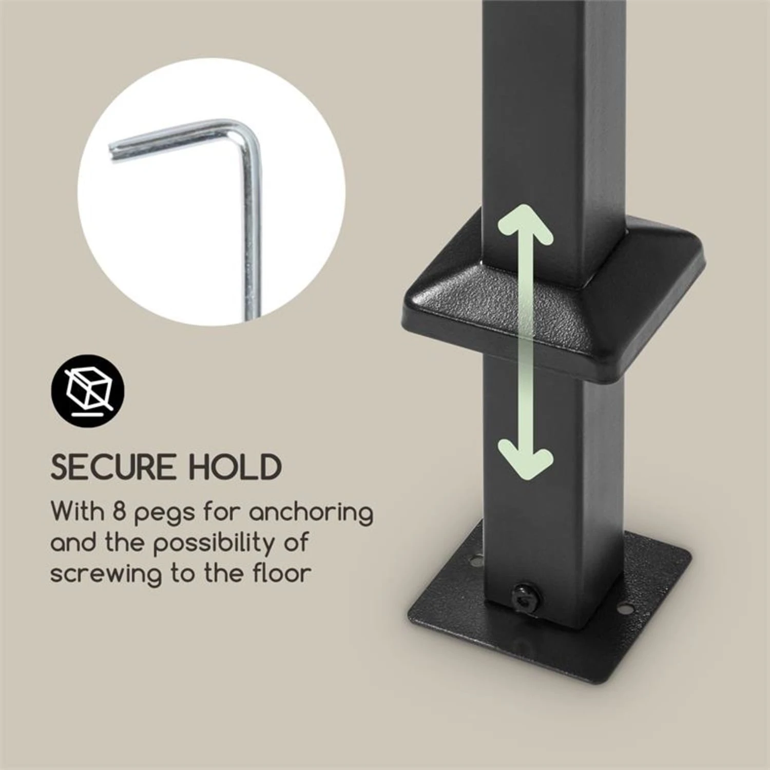 - auch zur Verschraubung am Boden geeignet (Schrauben nicht im Lieferumfang enthalten)